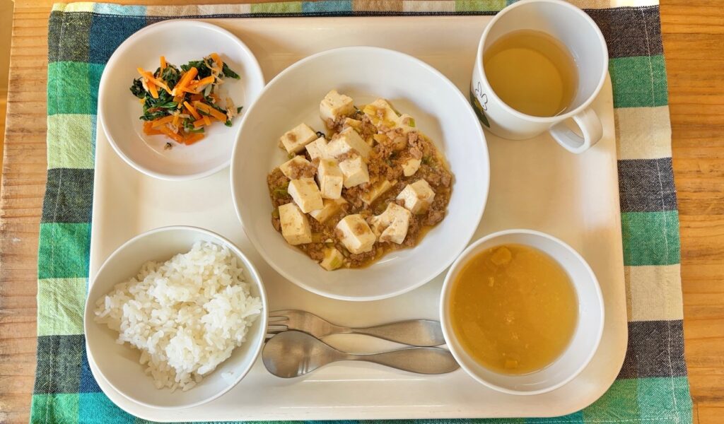 今日のメニュー 11月14日(金) ごはん マーボー豆腐 コーンスープ中華風 三色のツナ酢和え ツナ酢和えは、ほうれん草・人参・もやしの三色の野菜を使用しています。今から旬のほうれん草は、ビタミンK・葉酸・鉄分・βカロテン・ビタミンC・カリウムといった栄養を豊富に含んでいます。スーパーなどでは年中色々な野菜が手に入りますが、旬の物は旬でないものに比べて栄養価が高いと言われているのと、価格も少し安くなったりするので、旬を意識して使う食材を考えるのもおすすめです。 おやつ 大学芋 今日のメニュー 前の記事 今日のメニュー 次の記事