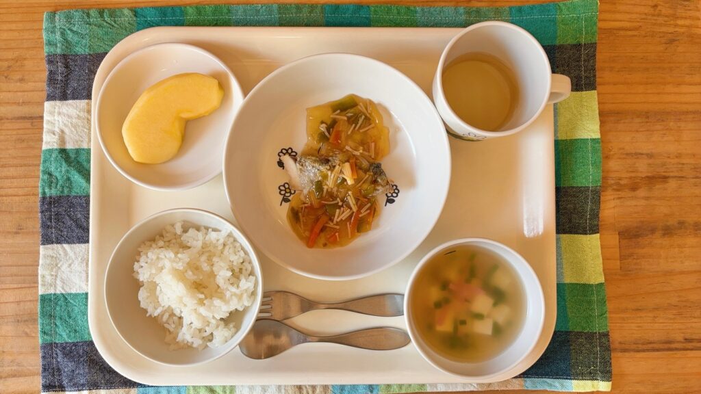 今日のメニュー 11月17日(月) ごはん 揚げ魚の甘酢あんかけ 豆腐の中華スープ りんご 今年も理事長先生からりんごをいただきました。傷があるというだけでお店に並ぶ事ができなくなってしまうりんご。味は傷のないりんごと同じで甘くて美味しいのに、食べてもらえないのはもったいないという農家さんの思いと、子どもたちに甘くて美味しいりんごを食べてもらいたいという前理事長の思いから、毎年この時期りんごを頂いています。あまーいりんご、子どもたちもとても喜んでいました。 おやつ ウインナーマフィン 今日のメニュー 前の記事 今日のメニュー 次の記事