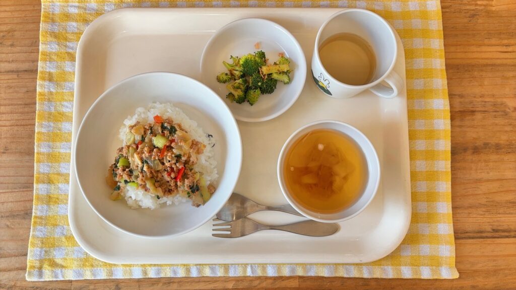 豚肉の甘みそ丼 すまし汁 ブロッコリーおかか和え