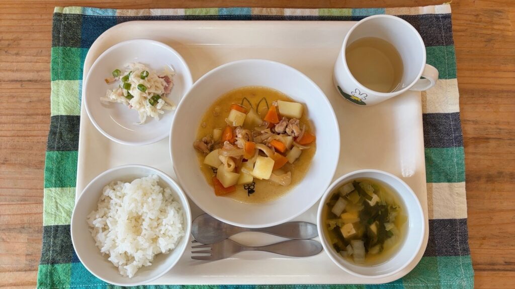 ごはん 鶏肉じゃが みそ汁 切り干し大根のサラダ
