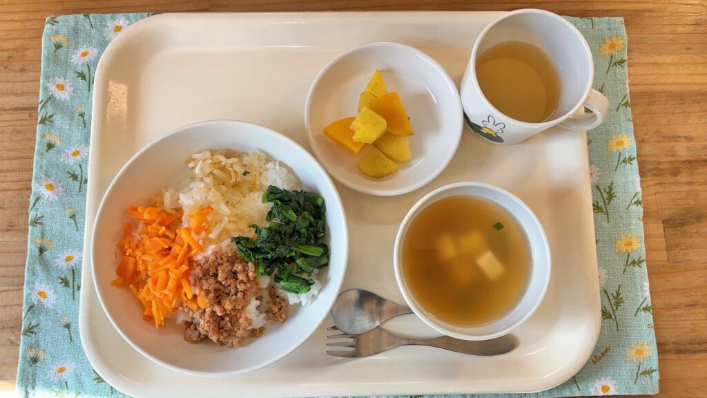 今日のメニュー 12月19日(金) キッズビビンバ 中華スープ さつま芋のレモン煮 給食室に「きょうのごはんなぁに?」と聞きにきてくれたお友だち。「今日はビビンバです♪」と答えると「やったー!」「ビビンバ、すきー!」と飛び跳ねて喜んでくれました。さつま芋のレモン煮には童浦こども園からいただいたさつま芋を使用しています。同じ“さつま芋”にも色んな色や味の違いがあることに気づいた今日の給食です。 おやつ 抹茶蒸しぱん 今日のメニュー 前の記事 今日のメニュー 次の記事