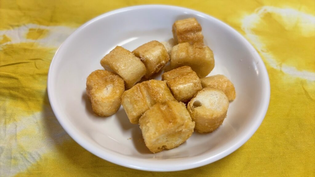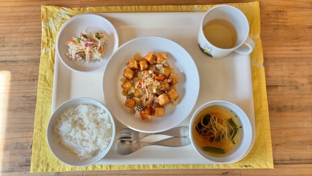 厚揚げのそぼろあんはたんぱく質やカルシウムを豊富に含んでいます。骨や歯が急速に成長するこの時期、カルシウムは積極的に摂りたい栄養の一つです。ビタミンD(魚、きのこ類)と一緒に摂るとカルシウムの吸収を良くしてくれるので、効率よく摂取することができます。栄養素にも相性の良い、悪いがあるので食べ合わせを意識してみることもおすすめです。
