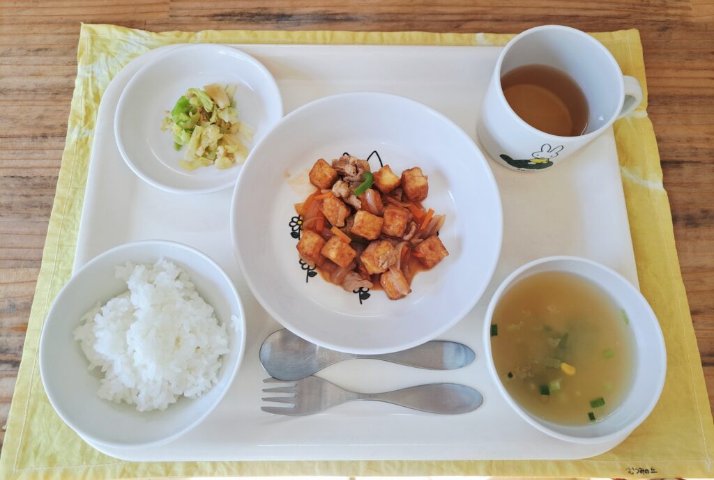 今日のメニュー 3月4日(火) ご飯 コーンスープ中華風 厚揚げのケチャップ煮 キャベツのツナ和え 今日は厚揚げのケチャップ煮です。 厚揚げは和食、洋食、中華料理に使える万能食材。肉や魚が苦手な子でもタンパク質がとれる食材です。 キャベツのツナ和えはキャベツの歯ごたえが味わえるように仕上げました。 シャキシャキたべたれたかな?? おやつ ふラスク 今日のメニュー 前の記事