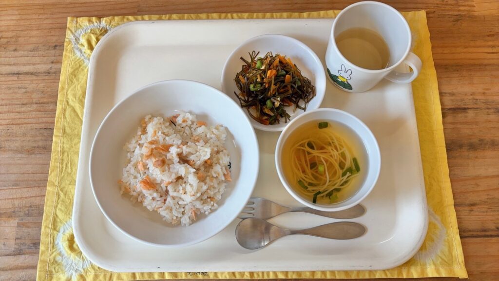 今日のメニュー 3月30日(月) 鮭ご飯 にゅうめん汁 昆布の煮物 鮭ご飯は良質なたんぱく質・EPA・DHAを摂ることができます。鮭の出汁とごまの風味が効いていて子どもたちからも「おかわり!」と大人気でした。混ぜご飯の時、混ぜてしまうと食べられない子用に白いご飯を少しとっておくのですが、今日の鮭ご飯はむつみの子も希望の丘の子もみんな食べれていました♪ おやつ クッキー 今日のメニュー 前の記事 今日のメニュー 次の記事
